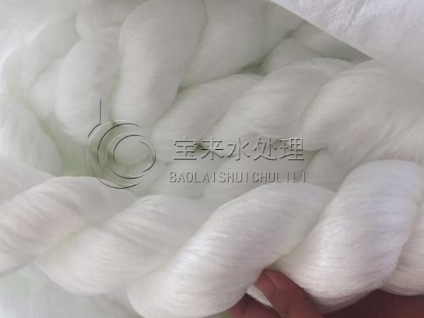 假如原水浊度较大,并且滤速比较高,这时分可以考虑使用丙纶纤维束,丙纶纤维束具有滤速高,易于反洗能特点。